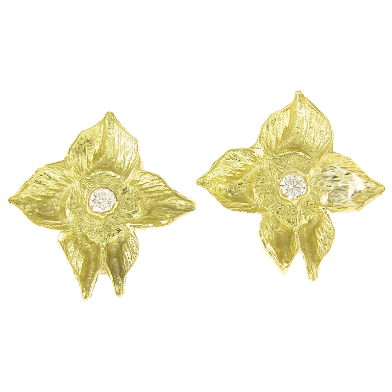 Three Petal Earrings with Diamonds
